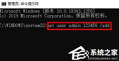4. 继续在下方输入net localgroup administrators admin /add回车运行即可。