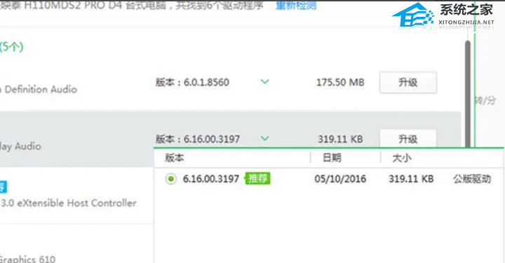 2、将会打开360驱动大师的界面,在经过扫描之后,之后将会出现相关可安装与升级的驱动程序,在其中就可以找到声卡驱动了,如下图所示。