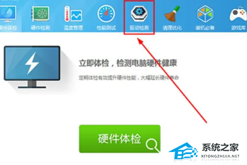 1、首先需要先进入到鲁大师的主界面,在上方的一排的栏目中找到“驱动检测”选项,并点击进入,如下图所示。