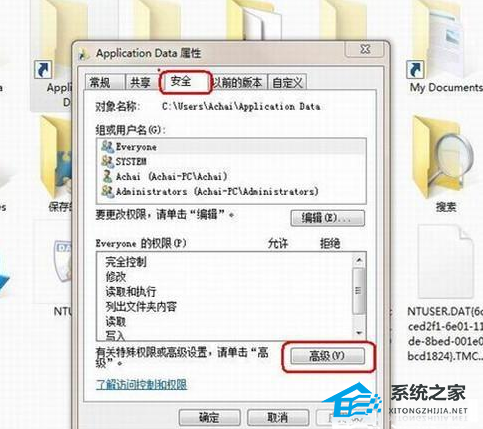 1、 首先找到打不开的文件夹,鼠标右键选择这个文件夹,接着选择属性,并且在文件属性界面选择安全选项,然后再点击高级进入高级编辑页面。