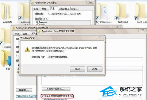 4、 在弹出的确定对话框选择是。那么“当前的所有者”就变为登录的管理员帐户了。