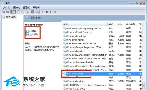 2、然后在打开的窗口中找到“Windows Search”,将它设置为“启动”。