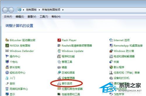 2、在控制面板里找到“索引选项”打开。
