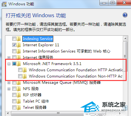 4、进入启用或关闭Windows功能选项,旧版组件前打勾。