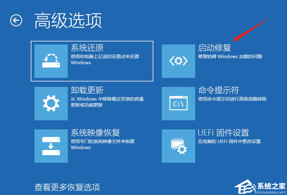 6. 高级选项里面有系统修复、启动修复、命令提示符、启动设置等,我们选择“启动修复”。