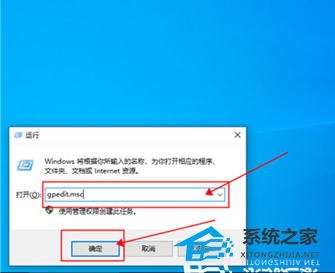 2、在【运行】窗口输入【gpedit、msc】点击【确定】。