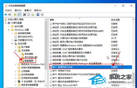 5、选择【安全选项】,右侧找到【账户:管理员账户状态】。