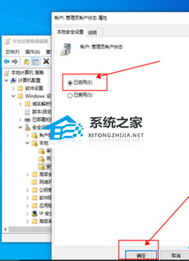 6、双击【账户:管理员账户状态】打开属性,勾选【已启用】点击【确定】。