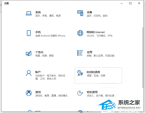 2. 在Windows设置中选择时间和语言打开。