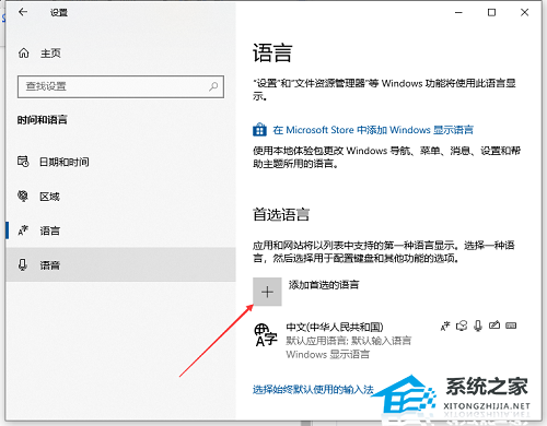 4. 在首选的语言下选择添加语言。