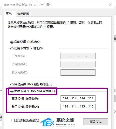 手动修改DNS服务器地址,首选DNS修改为114.114.114.114备用DNS改为114.114.115.115点击确定,这样有效提速。