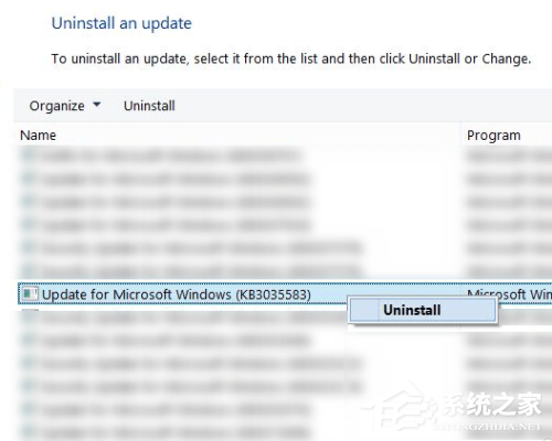 6. 单击“卸载更新”。您将被带到“ 卸载更新”窗口。(请确保)右键单击列表中第一个安装的更新,然后单击“卸载”。确认您的决定并按照屏幕上的说明进行操作就可以了。