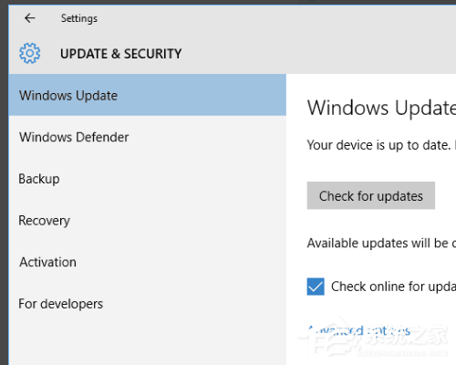5. 在“更新和安全性”窗口中,选择“ Windows Update”。