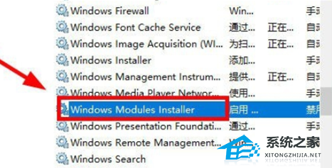 3. 打开服务控制面板,找到 windows modules installer。