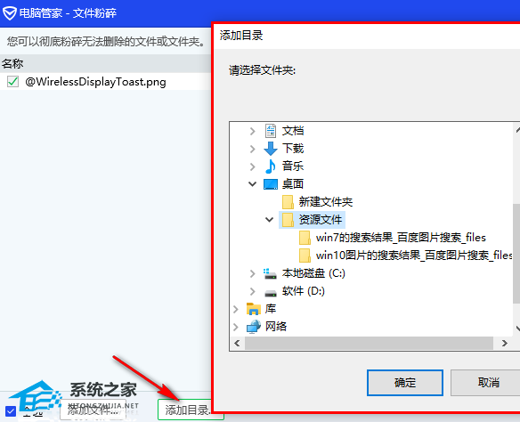 4、如果选择【添加目录】则,在弹出来的窗口中找到需要删除的文件点击确定添加到粉碎文件页面中即可粉碎。