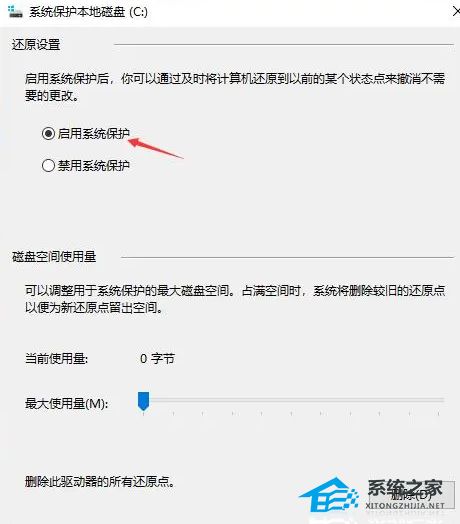 4、勾选“启用系统保护”选项,然后“确定”返回。