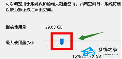 7、创建成功之后,继续单击“配置”选项打开后,给还原点设置能够占用的磁盘空间大小,然后点击“确定”即可。