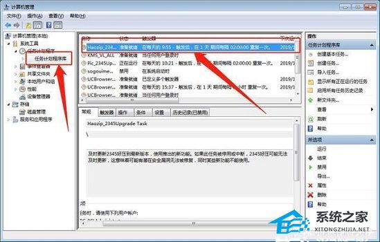 2. 然后我们在左边点击“系统工具”,找到“任务计划程序”下的“任务计划程序库”。在界面中就可以看到弹窗任务了。