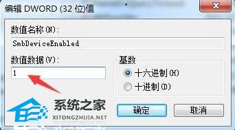 3. 右键修改“SMBDeviceEnabled”这个文件,将数值改为1,点击确定。