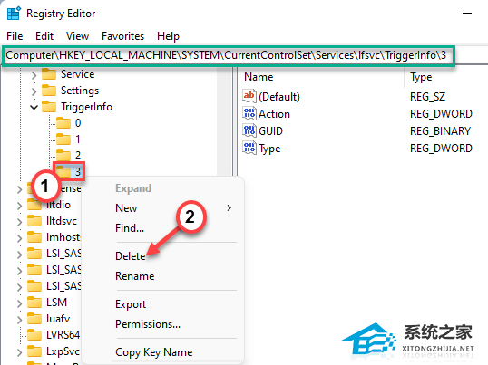 HKEY_LOCAL_MACHINESYSTEMCurrentControlSetServiceslfsvcTriggerInfo。