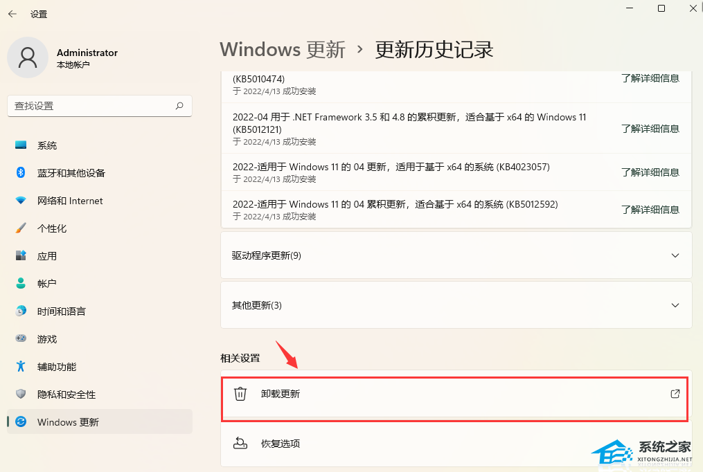 Windows11系统卸载掉有问题的更新补丁以后,就恢复正常了。