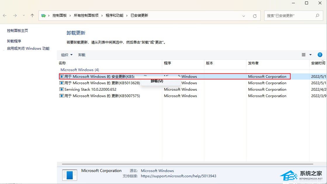 4、选择想要卸载的更新补丁,右键点击它然后卸载就可以了。
