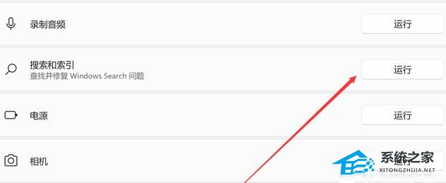 3、找到“搜索和索引”,点击右侧的“运行”。