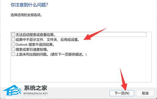 4、然后挑选遇到的问题,然后点击“下一页”。