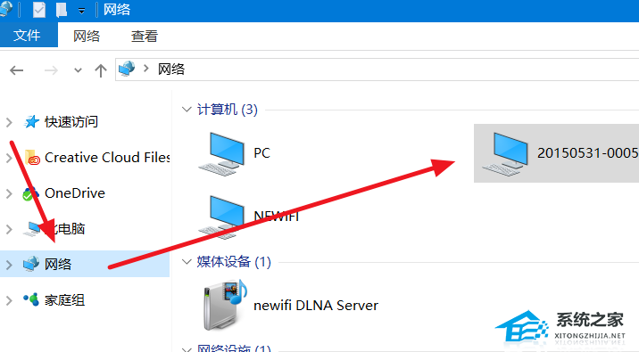 1、Win10访问局域网电脑,可以直接输入电脑IP地址,也可以在网络中搜索到共享电脑并点击打开。但并没有弹出输入用户名和密码的窗口。
