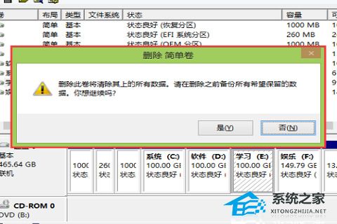 3、在弹出的“删除 简单卷”窗口中,确认删除。