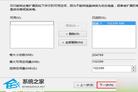 5、进入到“扩展卷向导”窗口中,点击“下一步”,完成扩展卷向导。