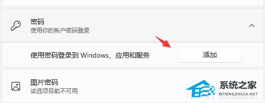 4、然后展开右侧的“密码”,点击下方“添加”。