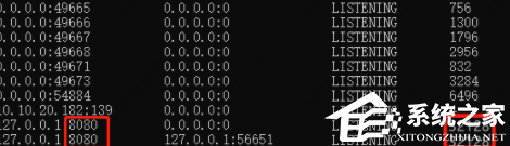 3、看到80端口的对应pid是32128,然后我们输入netstat-ano|findstr 8080,查看8080端口的pid。