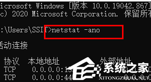 2、在运行界面输入“cmd”,在其中输入“netstat-ano”然后按下回车。