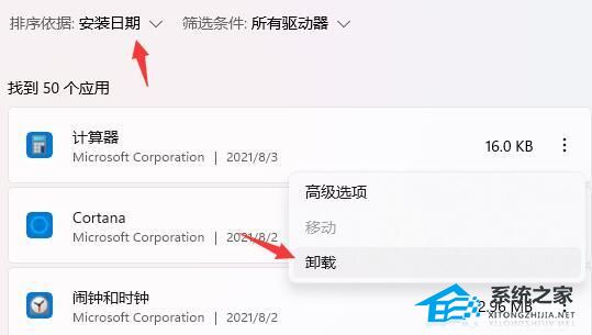 9、然后将排序更改为安装日期,依次卸载上一次使用时安装的应用。