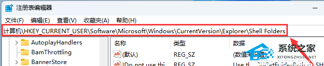 3. 定位到【Shell Folders】,在对应的右侧窗口中找到并双击【Desktop】;