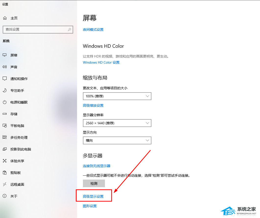 2. 在 “显示” 标签下,找到 “高级显示设置”。