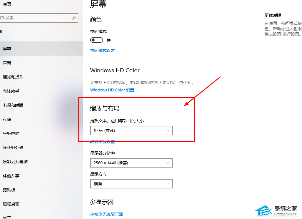 2. 在 “显示” 标签下,找到 “缩放和布局” 部分。