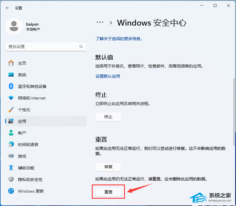 近期有Win11用户电脑上的安全中心打开没反应,导致无法及时获取系统安全状态的信息和进行必要的安全设置。对于这一情况,我们可以试试重置安全中心,或者是在终端中输入命令来解决,以下是详细操作步骤,希望可以让你的电脑恢复正常使用。