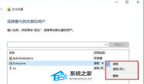 2. 添加用户,如果对局域网内所有用户开放,添加Everyone用户。