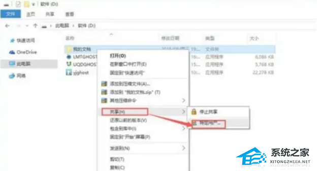 1. 在需要共享的文件夹或者是打印机上点鼠标右键,在弹出菜单中选择“共享”中的“特定用户”。