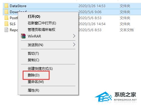 6. 接下来选中该文件夹中的“Datastore”与“Download”文件夹,然后右键点击这两个文件夹,在弹出菜单中选择“删除”菜单项,把这两个文件夹删除。