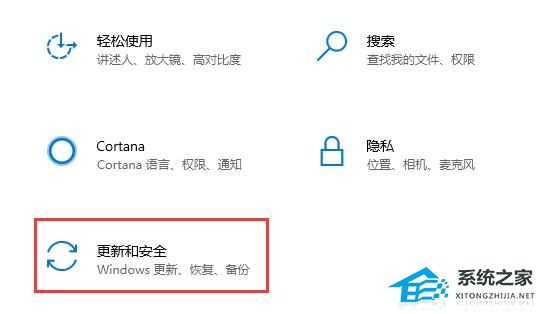 8. 接着打开Windows设置窗口,在窗口中点击“更新和安全”图标。
