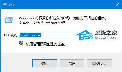 3. 接着在打开的Windows10运行窗口中,输入命令services.msc,然后点击确定按钮运行该程序。