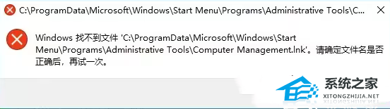 3)复制或剪切这个新建的快捷方式,然后找到弹窗中【Windows 找不到文件...】后面的目录粘贴就行了(在右键点击管理后弹出来的窗口)
