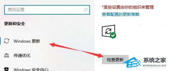 3. 在更新和安全左侧选择“Windows更新”,然后在右侧检查更新就可以更新了。