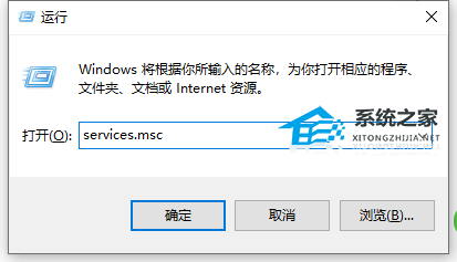 2. 在给出的运行窗口中输入“services.msc”。点击“确定”打开。