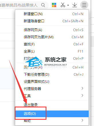 2. 在弹出的菜单栏中点击“选项”或者“设置”进入。