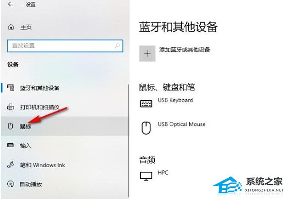 3. 在打开的窗口界面中,点击左侧栏中的“鼠标”选项。