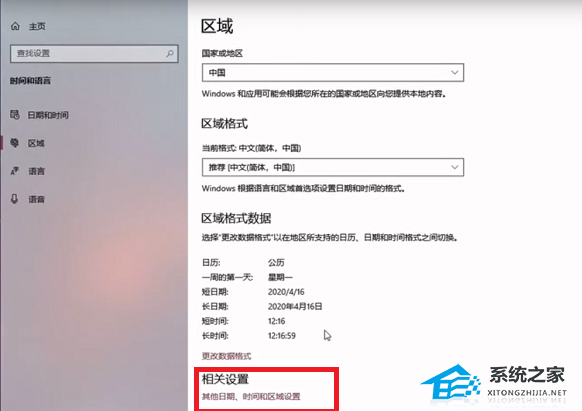 2. 在页面中找到“日期、时间和区域格式设置”,双击打开。
